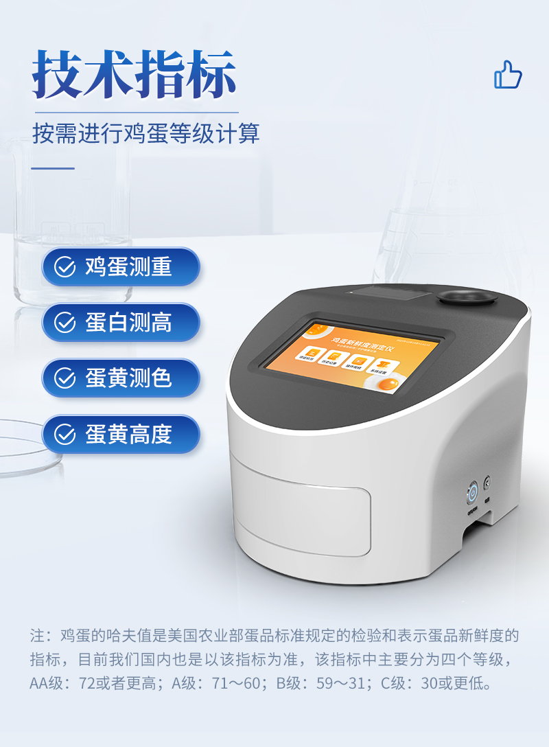 隨著消費(fèi)者對(duì)食品安全問(wèn)題的日益關(guān)注,雞蛋品質(zhì)檢測(cè)成為了保障雞蛋質(zhì)量、維護(hù)消費(fèi)者健康權(quán)益的重要手段。我司生產(chǎn)的雞蛋品質(zhì)檢測(cè)儀可通過(guò)專業(yè)的檢測(cè)項(xiàng)目和方法,進(jìn)行雞蛋的品質(zhì)檢測(cè)和分析。