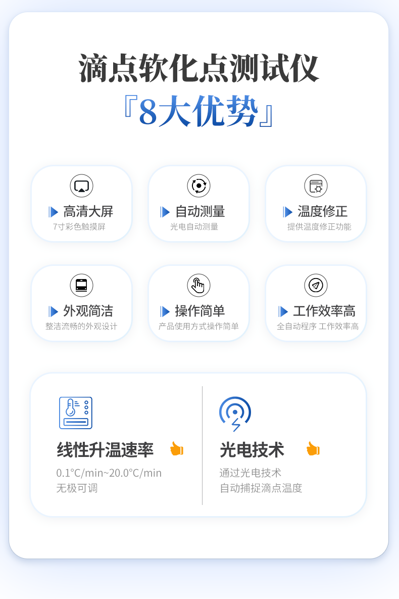 1. 7寸彩色觸摸屏,直接顯示滴點軟化點溫度。